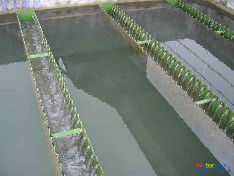 反應沉淀池經(jīng)過改造,每組凈水能力達到3850噸/時,即55萬噸/天,沉淀池出水濁度小于3NTU,從而保證了濾后水濁度小于1NTU。