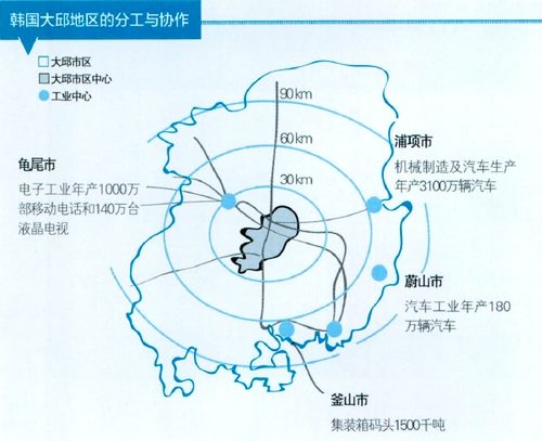 目前來看,規(guī)劃中的“城市圈”有16個,多處在“三縱兩橫”城市帶,包括長三角、珠三角、京津冀、山東半島、遼中。以韓國大邱市為例,發(fā)達(dá)的公路和高鐵網(wǎng)絡(luò)將它與周邊的浦項市、龜尾市、蔚山市、釜山市連接起來,從而使不同城市在汽車制造、電子制造等行業(yè)形成了比較合理的產(chǎn)業(yè)分工與協(xié)作體系。