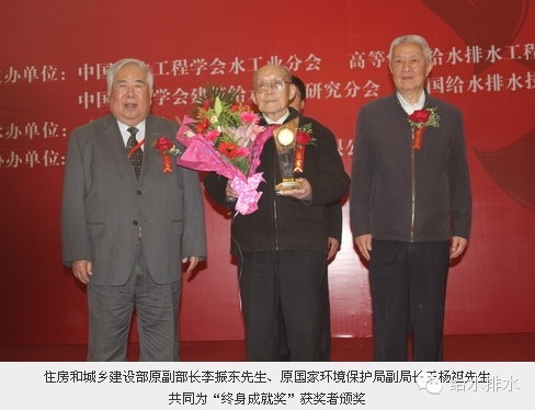 經(jīng)歷過國(guó)民黨統(tǒng)治時(shí)代,經(jīng)歷過艱苦的抗戰(zhàn)年代,經(jīng)歷過解放后的新中國(guó)時(shí)代,那些艱苦的記憶讓他即使現(xiàn)在物質(zhì)充盈了也還保持著勤儉節(jié)約的好習(xí)慣,每一張紙他都要正反面都寫滿了才舍得扔掉。也許所有人都會(huì)和我一樣,每了解他多一分,對(duì)這位可愛老者的喜愛和崇敬就會(huì)加深一分。就如當(dāng) 95 歲高齡的他獨(dú)自走上領(lǐng)獎(jiǎng)臺(tái),臺(tái)下的是一片驚嘆,緊接著就是響徹整個(gè)會(huì)場(chǎng)的掌聲;當(dāng)他向同行們表達(dá)自己的3 個(gè)心事,致歉時(shí)深深的三鞠躬,感染、鼓舞和震蕩了所有人的心,掌聲連綿不絕,此起彼伏,久久不息,有的甚至激動(dòng)的站起身也跟著鞠躬。會(huì)場(chǎng)上幾百人鼓掌的,起立的,鞠躬的,以此表達(dá)他們對(duì)這位水業(yè)老前輩的崇敬和敬意,站在舞臺(tái)后側(cè)的我被這一畫面震驚了,這也許就是這位老者的人格魅力才有的號(hào)召力和感染力吧!