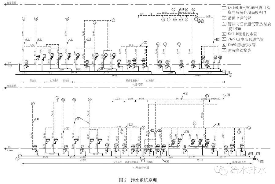 該游樂園項目融合了中外的設計優(yōu)點,其排水系統(tǒng)全部采用器具通氣方式。游樂園中的建筑大部分是單層建筑,其排水系統(tǒng)相對簡單明了,對器具通氣做一個全面、深人的了解,該項目無疑是很好的范例。