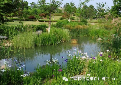 值得注意的是,水生植物只是水景的點(diǎn)綴,不宜過密布置,否則會喧賓奪主,既影響水中倒影及景觀視線,也會影響水體的流動和防洪。對于要求治污功能較強(qiáng)的水體,應(yīng)選擇一些耐污強(qiáng)又具有較高觀賞價(jià)值的植物,如千屈菜,水蔥,德國鳶尾等。