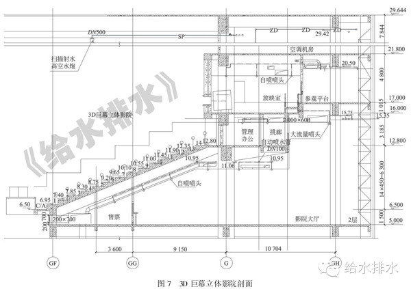 球幕影院放映室設恒溫恒濕機給排水。另因球幕影院的空調(diào)機房是自噴系統(tǒng)的最低點,需設放水閥,防水排至地下室集水坑。