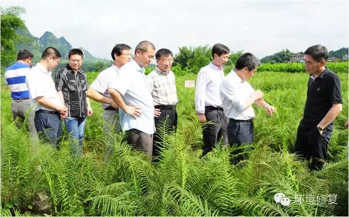 圖為施爾畏副院長、嚴慶局長和葛全勝所長等一行考察環(huán)江農(nóng)田土壤修復工程