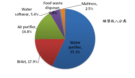 Ø 公司主營(yíng)業(yè)務(wù)中租賃業(yè)務(wù)占據(jù)主導(dǎo),并且在租賃業(yè)務(wù)中,以凈水器產(chǎn)品為主導(dǎo)。