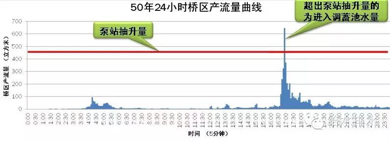 超出泵站抽升量的為進(jìn)入調(diào)蓄池的水量,計算可得為195m3。