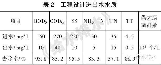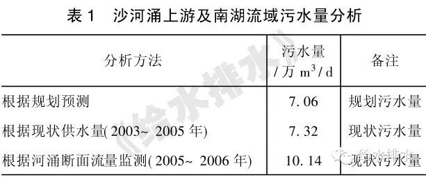 沙河涌上游及南湖流域采用三種不同方法預測的污水量見表1, 設計流量重點參照河涌實測流量值, 并考慮到污水量逐漸增加的可能, 在設計上留有余地, 從而確定京溪污水處理廠規(guī)模為10 m3/ d。2. 2 設計水質