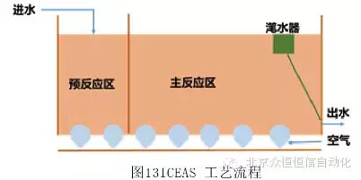 80 年代初,連續(xù)進(jìn)水的 ICEAS 工藝誕生(如圖13)。該工藝在傳統(tǒng)的SBR工藝基礎(chǔ)上,在反應(yīng)池中增加一道隔墻 ,將反應(yīng)池分隔為小體積的預(yù)反應(yīng)區(qū)和大體積的主反應(yīng)區(qū),污水連續(xù)流入預(yù)反應(yīng)區(qū),然后通過隔墻下端的小孔以層流速度進(jìn)入主反應(yīng)區(qū),解決了間歇式進(jìn)水的問題。