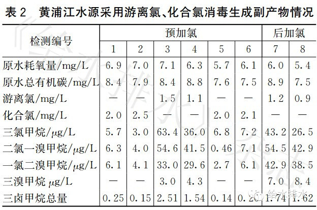 4.1黃浦江水源消毒副產(chǎn)物生成情況(見表2)