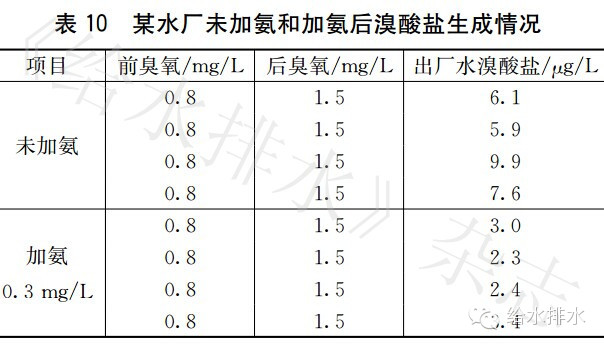 (6)深度處理工藝加氨可以降低溴酸鹽生成,主要是氨能起到屏蔽作用,使溴酸鹽不易生成,目前上海幾家深度處理水廠已在應(yīng)用。