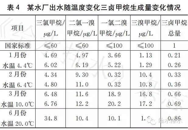 表3中的消毒副產(chǎn)物生成情況是某水廠生產(chǎn)性數(shù)據(jù)。