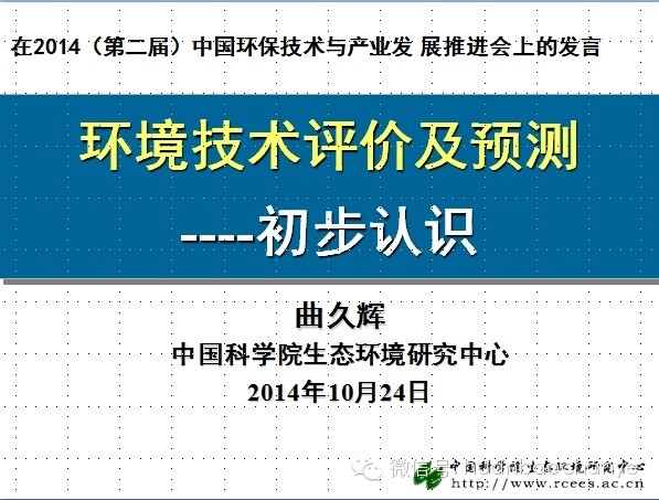 2014年曲久輝院士對(duì)中國(guó)環(huán)境技術(shù)評(píng)價(jià)與預(yù)測(cè) 低碳、循環(huán)、健康:環(huán)境保護(hù)與治理技術(shù)及產(chǎn)業(yè)方向