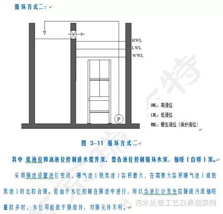 如果采用好氧池+膜池或脫氮池+膜池的運(yùn)行方式,為了保證均衡的污泥濃度和脫氮效果,需要進(jìn)行活性污泥(MLSS)循環(huán)。大致有以下三種方式: