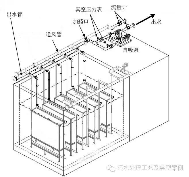 3) 減緩或防止膜污染(由于氣泡的攪動(dòng)及氣流在膜表面形成的循環(huán)流對(duì)膜表面有沖刷和剪切作用,可有效防止或減輕污染物在膜表面的附著和沉積)。