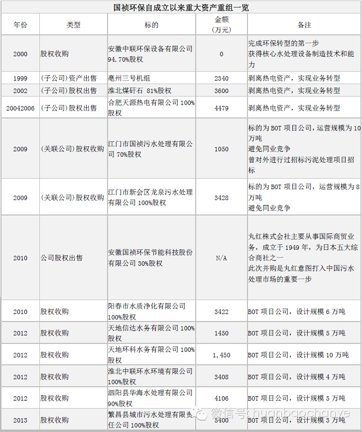 國禎環(huán)保成立以來的重大資產(chǎn)重組事件如上表所示。