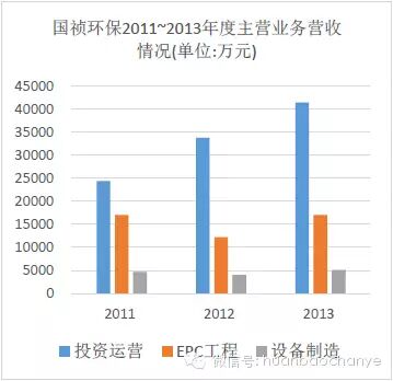 根據(jù)國禎環(huán)保最新發(fā)布的2014第三季度報告,公司的業(yè)務(wù)可以概括為:以生活污水處理業(yè)務(wù)為核心,污水處理投資運營、環(huán)境工程EPC、污水處理設(shè)備生產(chǎn)銷售三大業(yè)務(wù)板塊協(xié)調(diào)互補(bǔ)發(fā)展。查看企業(yè)審計報告可以發(fā)現(xiàn),這三大主營業(yè)務(wù)收入占據(jù)企業(yè)總營收99.7%左右。