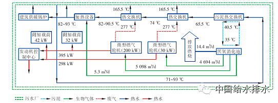 通過開源與節(jié)流措施,到2013年希博伊根污水處理廠已實現(xiàn)了產電量與耗電量比值達90%~115%、產熱量與耗熱量值達85%~90%的佳績,基本接近碳中和運行目標。其回收能源應用流程如圖2所示。