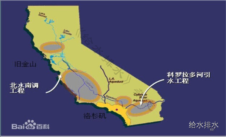 一首《南加州從不下雨》唱出了加州人的心聲。加州政府在上世紀50年代初開始考慮解決北澇南旱的調(diào)水之策。工程引加州北邊的奧羅維爾湖的水到南端的佩里斯湖整個調(diào)水工程主干道占加州南北總長度的2/3,水越過蒂哈查皮山,流到干旱的加州南方區(qū),此工程成為目前美國最大的調(diào)水工程。