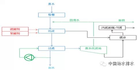新開(kāi)河水廠(chǎng)排泥水處理流程
