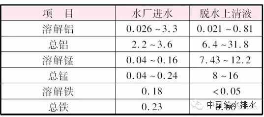 脫水機(jī)的上清液是排泥水的組成部分,其所攜帶的污染物質(zhì)比以上各類(lèi)排泥水?dāng)y帶的污染物質(zhì)要多(見(jiàn)表1)。目前脫水機(jī)上清液通常采用直接排放的方式。無(wú)論是這部分上清液回流再利用或者直接排放,都需要盡可能提高脫水機(jī)上清液的固體回收率,減少上清液攜帶的污染物質(zhì)。通過(guò)減少上清液攜帶的SS,可以大幅減少鋁和鐵的含量。