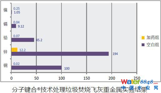 可利用分子鍵合技術(shù)將焚燒后的飛灰進行單獨收集,通過添加分子鍵合穩(wěn)定劑,對飛灰中的重金屬進行固化穩(wěn)定化處理,使飛灰中的重金屬浸出濃度明顯降低,遠遠低于《生活垃圾填埋場污染控制標準 GB 16889-2008》中所規(guī)定的標準限值,經(jīng)穩(wěn)定無害化后的飛灰可進行填埋。該技術(shù)有效降低了飛灰的處置費用和難度。