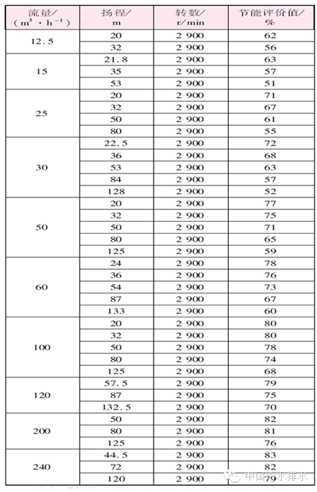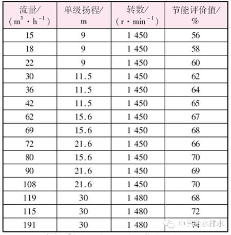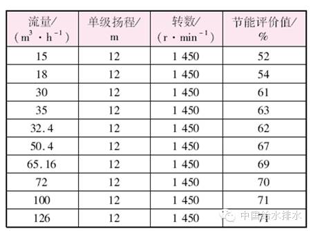 計算得出比轉(zhuǎn)數(shù)后,查《清水離心泵能效限定值及節(jié)能評價值》(GB 19762—2007)中的圖表,即可計算得出泵規(guī)定點效率值、能效限定值節(jié)能評價值