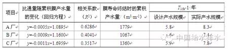 4 MBR工程離線化學(xué)清洗后比通量無法恢復(fù)時的累積產(chǎn)水量