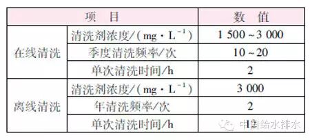 C工程的化學(xué)清洗方案進(jìn)行調(diào)查,包括在線清洗和離線清洗所使用的堿洗劑NaClO的濃度、清洗頻率以及清洗時間,如表2所示。在線清洗頻率以季度為單位進(jìn)行次數(shù)求和,離線清洗頻率以年為單位進(jìn)行次數(shù)求和,清洗劑濃度和清洗時間均為單次清洗數(shù)據(jù)。