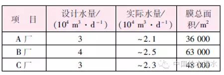 選擇3座處理城市污水的大型MBR工程進(jìn)行調(diào)查。建設(shè)時間最早的A廠是在已有二級生物處理出水之后增設(shè)的MBR工程,于2006年開始運(yùn)行,至2012年對膜進(jìn)行部分更換,運(yùn)行6年以上。BC廠均為與厭氧/缺氧生物脫氮除磷耦合的MBR工程,運(yùn)行時間分別為4年和5年。3MBR工程的基本信息如表1所示,均采用A廠家提供的聚偏氟乙烯(PVDF)中空纖維膜組件,膜孔徑為0.4mm。