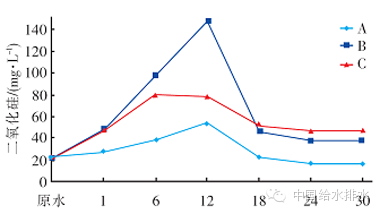 3 3種管材中浸泡水二氧化硅含量變化趨勢(shì)