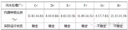 1 不同污水處理廠的內(nèi)源呼吸比例和運(yùn)行狀況