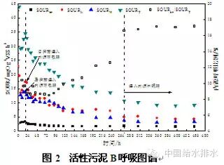 微生物的呼吸速率包括外源呼吸速率和內(nèi)源呼吸速率,前者與污水中的污染物有關(guān),后者與維持基本生命活動有關(guān)。對好氧活性污泥而言,其呼吸速率常用耗氧速率OUR表征,OUR值的大小及其變化趨勢可以指示處理系統(tǒng)負(fù)荷和有機(jī)物降解情況。大量研究表明,外源呼吸OUR是活性污泥運(yùn)行管理的重要參數(shù)。內(nèi)源呼吸雖在整個呼吸過程比例較小,但亦有重要的意義。