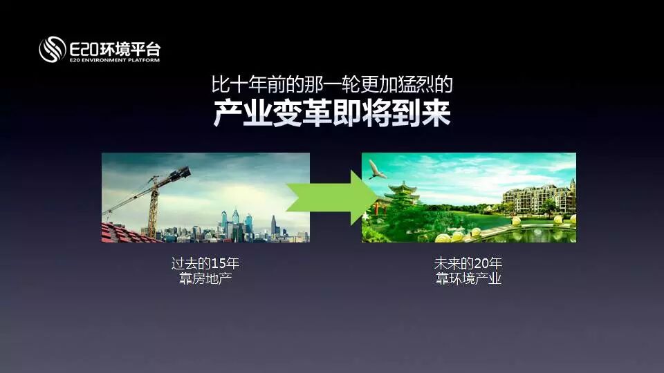 E20環(huán)境平臺面向行業(yè)TOP20的優(yōu)秀企業(yè)進行服務(wù)的一個平臺,15年的堅守和夢想,在環(huán)境領(lǐng)域里完善市場機制,包括論壇、研究報告、網(wǎng)站,始終不變的宗旨就是這個,想促進產(chǎn)業(yè)的升級與轉(zhuǎn)型。