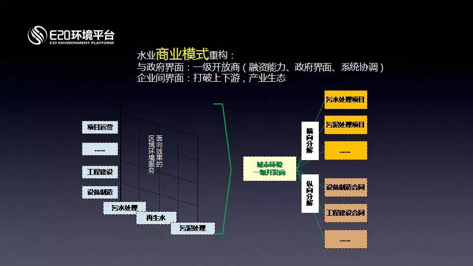我剛才講到了,為什么是兩個方向,一個是細分領(lǐng)域各個組合,另外是面向地方政府、面向污染企業(yè)、園區(qū)政府一個綜合性的服務(wù)界面。這兩種公司必然會成為未來產(chǎn)業(yè)的主流。