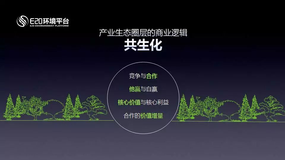 這種體制下,我們有一個基本的理念,就是產(chǎn)業(yè)共生。原來產(chǎn)業(yè)很少談共生,就是因為每個人的界面都是政府,當政府退到公共服務(wù)完全外部化的時候,企業(yè)做單元服務(wù)的時候,四周的全都是企業(yè),就不再是一個簡單的政府關(guān)系形成我們的唯一體系了,這時候需要共生。共生有幾個原則,不考慮別人,只考慮自己的公司是很難生存的。核心利益是建立在核心價值基礎(chǔ)上的,而且核心價值必須是合作對方也認同的。