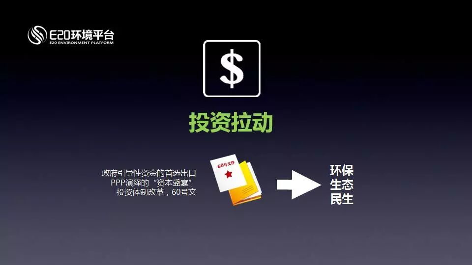 雖然這四個都是動力,但這四個動力對產(chǎn)業(yè)的影響是有區(qū)別的。比如投資拉動,一定程度上在沖擊我們的第一產(chǎn)業(yè)鏈,如果這個行業(yè)已經(jīng)形成了一個非常好的市場投資體系,過度的投資拉動會產(chǎn)生擠出效應(yīng)。我們過去經(jīng)歷過幾次擠出效應(yīng),那時候沒有回答什么是PPP,錢從哪出,不是政府考慮的范圍。我們有兩個領(lǐng)域基本走通了,市政污水收費起來了,垃圾焚燒發(fā)電和補貼起來了,這兩個行業(yè)蒸蒸日上。這四個投資拉動并不都是正向的,但在目前這個軌跡下是正向的。