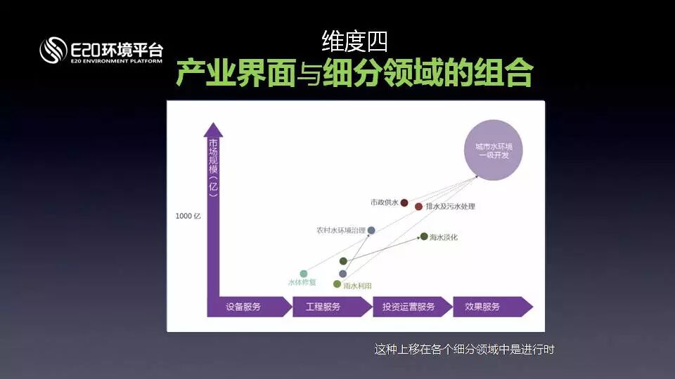 我們將界面分成了設(shè)備服務(wù)時代、工程服務(wù)時代、投資運營服務(wù)、效果服務(wù)時代,大家都在向著更接近市場的位置飄移,飄移在各個地區(qū)發(fā)展不一樣。不同的省市,由于當?shù)卣叩牟煌矔胁町,但是這個趨勢是可以看到的。