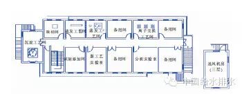 此次改造在建筑方面屬于修繕,即不能改變建筑的結(jié)構(gòu)和新增面積,只能在原有建筑的基礎(chǔ)上進行少量改動,如門、窗的更換,地面、墻面和吊頂?shù)母脑。而該低放射性廢水處理設(shè)施建造年代早,基礎(chǔ)結(jié)構(gòu)差,二樓的承重無法滿足現(xiàn)有工藝的要求,這就對工藝設(shè)備的布局提出了挑戰(zhàn)。經(jīng)過反復(fù)討論和多次修改,最后決定盡可能將重的設(shè)備布置在一樓,同時對部分系統(tǒng)進行簡化,如水泥固化系統(tǒng);對必須放置在二樓的部分設(shè)備所在房間進行局部加固,如蒸發(fā)工藝間和離子交換間(見圖1)。另外,為了滿足放射性物質(zhì)操作和國家電離輻射防護有關(guān)標準和法規(guī),采用了先進的工藝設(shè)備和儀表,并對主要工藝設(shè)備的操作采用遠程控制。