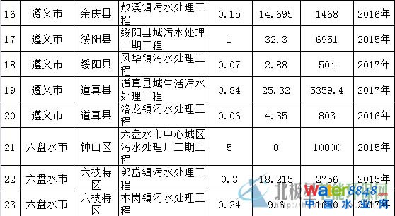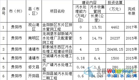 貴州《城鎮(zhèn)生活污水處理(含管網(wǎng)配套)設施建設項目表》 印發(fā)《貴州省環(huán)境污染治理設施建設三年行動計劃(2015—2017年)》