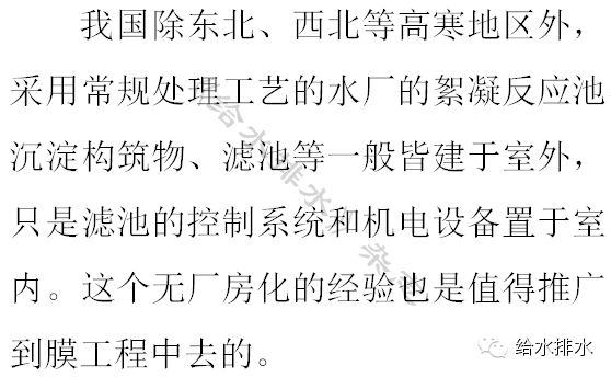 從降低膜工程的建設(shè)費(fèi)用和提高運(yùn)行的安全性兩方面綜合考慮,中、小型水廠比較適宜采用柱式膜,大型水廠比較適宜采用浸沒(méi)式膜。
