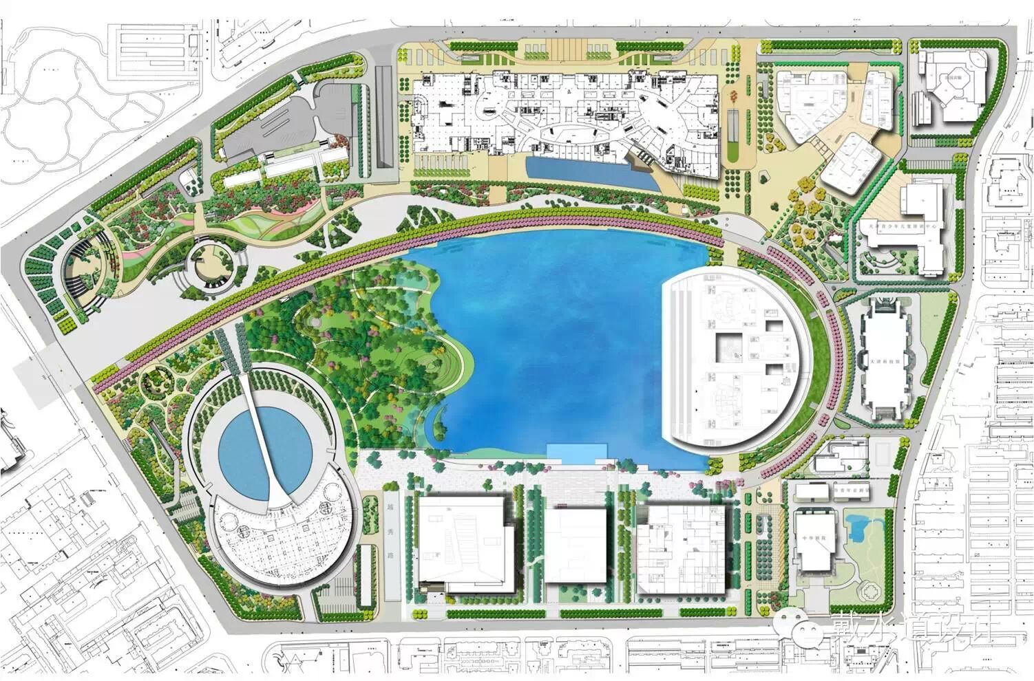 圖3.2 天津市文化中心建成后中心湖區(qū)鳥瞰