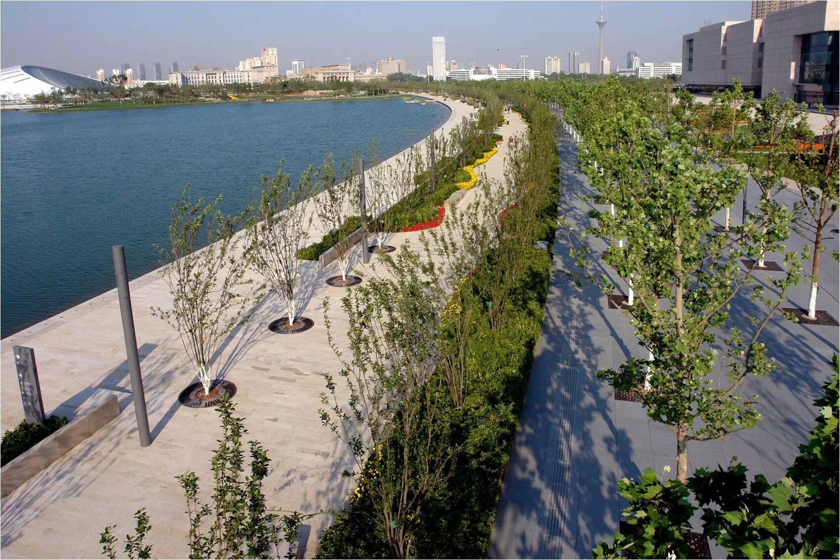 • 中心湖:中心湖面積97900m2,設計常水位2.2m,三年一遇最高水位2.5m,最低水位2.1m。