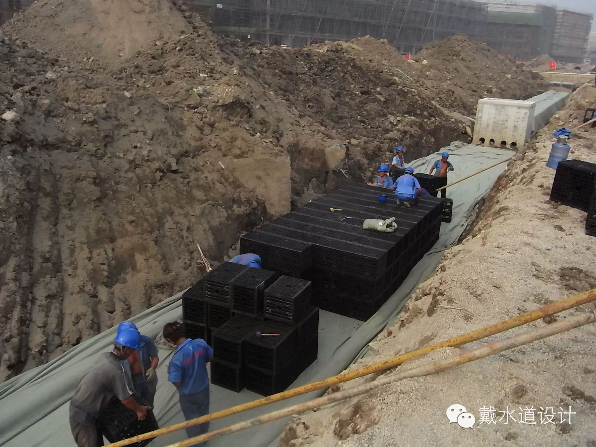 • 調蓄溝:調蓄溝的主體為具有骨架結構的“蓄水模塊箱”,其使用高強度的合成物質制造,有著很強的承壓能力和超過傳統(tǒng)蓄水設施的空間利用率。