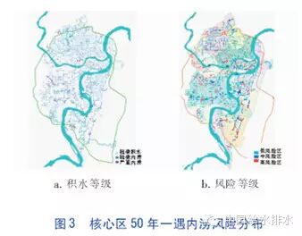 從水力模型對核心區(qū)16個流域排水能力一維模擬及50年一遇設計暴雨下的內(nèi)澇風險評估結果可知: