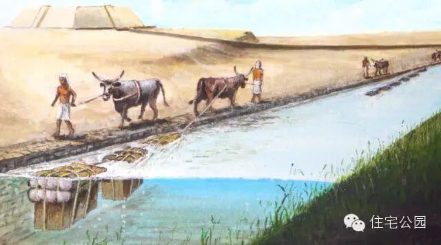 在金字塔旁邊,先挖一條運河,所需物料全部由水運。他們運輸石材不是之前假想的那樣的,而是這樣的: