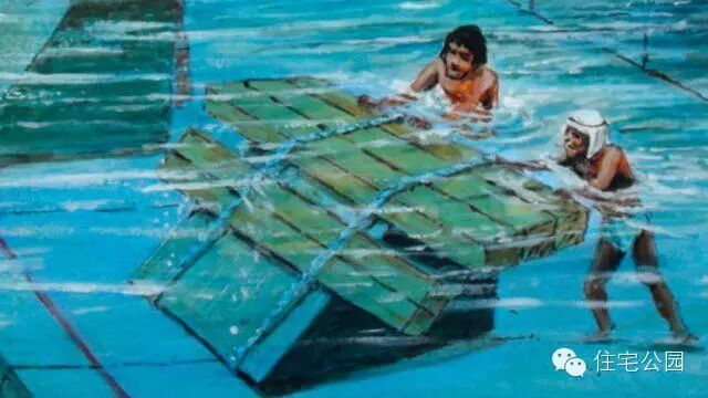 給石頭上綁上易于漂浮的充氣皮囊或者木頭,這樣幾頓重的石頭就能輕松搬運了。