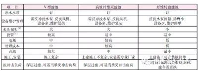 目前用于污水處理廠深度處理的過(guò)濾工藝主要有V型濾池、高效纖維束濾池、纖維轉(zhuǎn)盤(pán)濾池等,幾種過(guò)濾工藝的性能比較見(jiàn)表2。