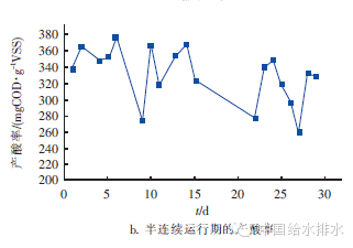 ② 接種種泥對污泥厭氧發(fā)酵產(chǎn)酸起著重要作用,半連續(xù)運(yùn)行過程中,VFAs的平均濃度達(dá)7.63 g/L,平均產(chǎn)酸率為330.25 mgCOD/gVSS,比接種前提高了127%。