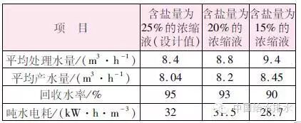 產生不同含鹽量的濃縮液運行電耗見表2。