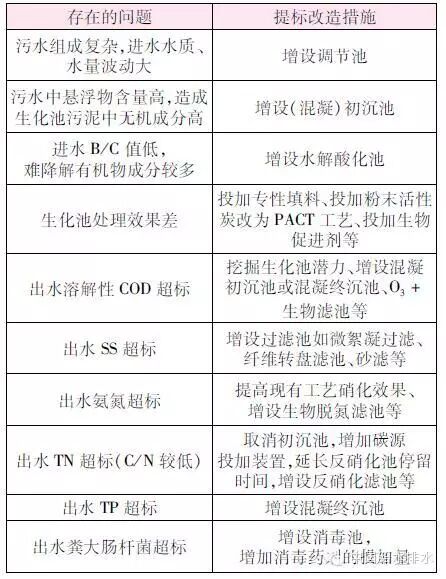 3 處理工藝存在的問題及相應(yīng)的提標(biāo)改造措施