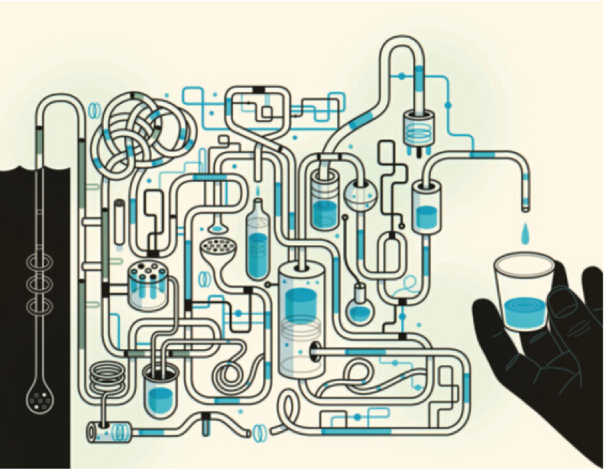 科恩來(lái)到一根塑料管前,擰開一個(gè)水龍頭。干凈的水流了出來(lái),他用手捧住一些水,喝了一小口,將其余的水擦到臉上。“如果我們能夠制造出不需要人駕駛的汽車,為什么不能建造出不需要人操作的RO工廠呢?”